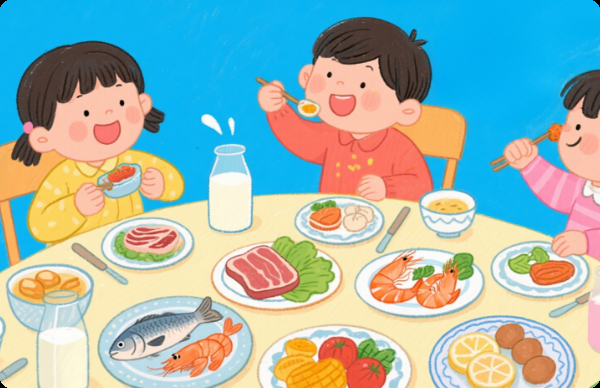 饮食上,要保证孩子营养均衡,多摄入富含钙、铁、锌的食物,像牛奶、瘦肉、鱼虾、坚果等。