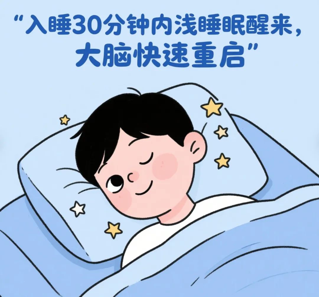 入睡后,我们会经历浅睡眠到深睡眠的过渡,一般 30 分钟内刚好停留在浅睡眠阶段。