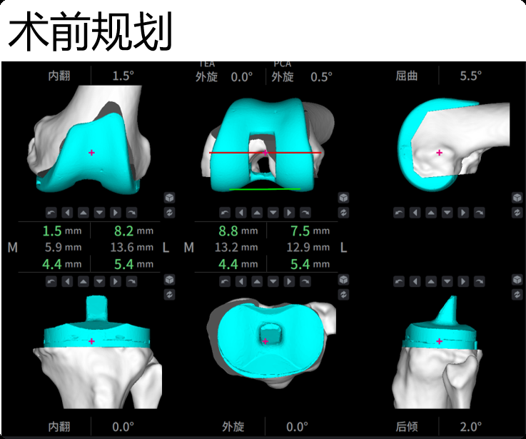 手术前,机器人系统先给王女士进行 CT 三维建模和个性化手术规划,把股骨远端的旋转角度、关节线倾斜程度、骨缺损情况都 “算” 得明明白白,就像给膝盖画了一张 “精准地图”。