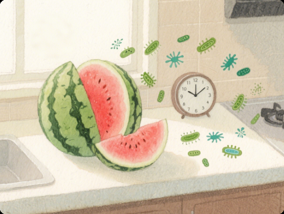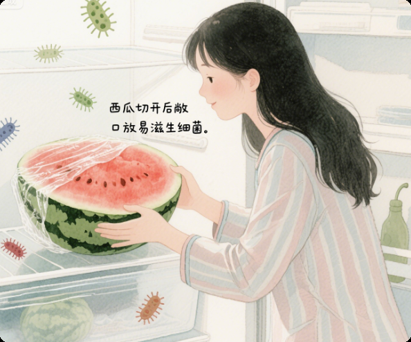 夏天室温高,切开的西瓜暴露在空气中,2 小时以上就可能滋生细菌(比如沙门氏菌、大肠杆菌),尤其是没盖保鲜膜直接放冰箱,还会交叉污染其他食物。