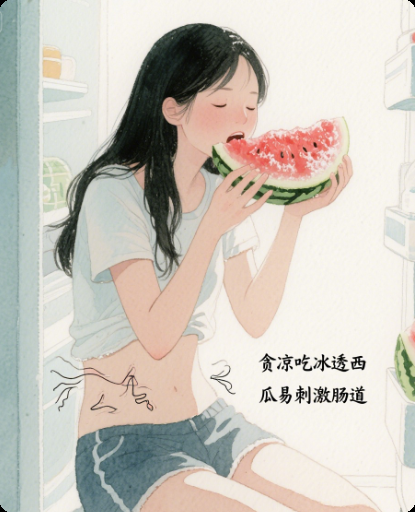 很多人喜欢把西瓜放冰箱冻到结霜,咬一口透心凉,但这种 “冰刺激” 对肠道敏感的人来说很危险。