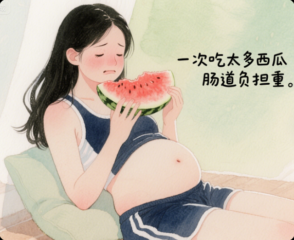西瓜含水量高达 90%,过量吃会让胃和肠道 “负担过重”。