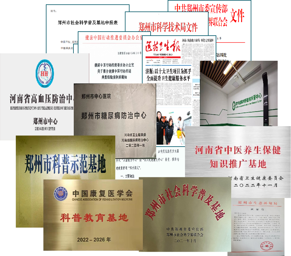 荣获多项荣誉,是“中国康复医学会科普示范基地”“河南省中医养生保健知识推广基地”“郑州市健康科普示范基地”“郑州市社会科学普及基地”“健康示范单位”“健康细胞单位”。