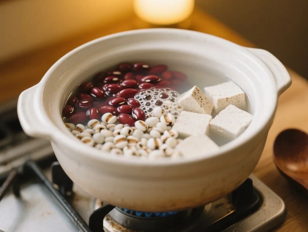很多人早餐爱喝白粥,但白米性偏凉,反而可能加重体内湿气。不妨换成由赤小豆、薏米、茯苓煮成的杂粮粥—— 赤小豆能利水消肿,薏米可健脾祛湿(注意需提前炒过,去除寒性),茯苓则能健脾宁心,三者搭配堪称 “早餐排湿黄金组合”。