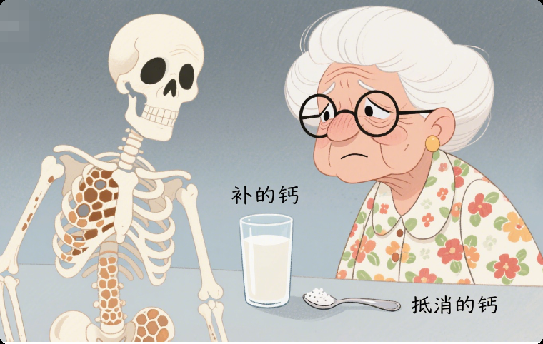 对中老年人来说更糟,本来钙吸收就差,吃太咸等于 “雪上加霜”,骨头变脆、容易骨折的风险蹭蹭涨。
