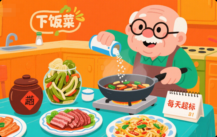 年纪大了嗅觉减退,总觉得 “没味儿”,炒菜时不自觉就多撒盐;再加上咸菜、酱肉这些下饭菜,一天的盐早就超标了。