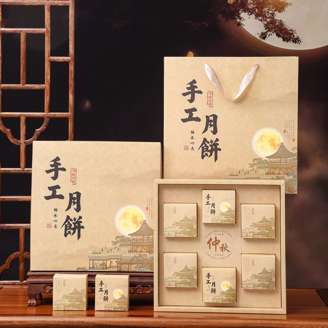 内含:伍仁山药月饼75g2枚、红豆陈皮月饼75g2枚、茯苓云腿饼65g1枚、五黑蛋黄酥65g1枚