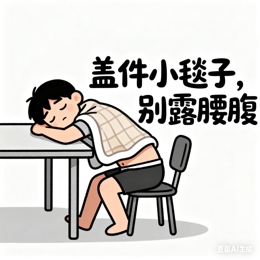 空调房里温度低,午睡时身体放松,很容易着凉。