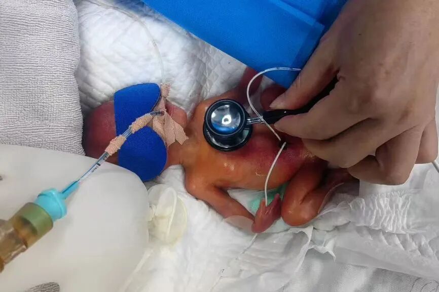 2025年7月31日晚,胎龄仅24周的“点点”提前降临人间,出生体重仅380克,