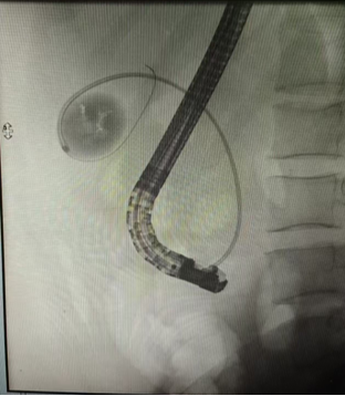 针对张先生的病情,该院消化内科胆胰疾病亚专业组主任医师张利、副主任医师屈重行牵头,联合门诊麻醉、内镜护理团队,决定采用 ERCP 联合经口胆道镜胆囊结石取石术这一创新方案。