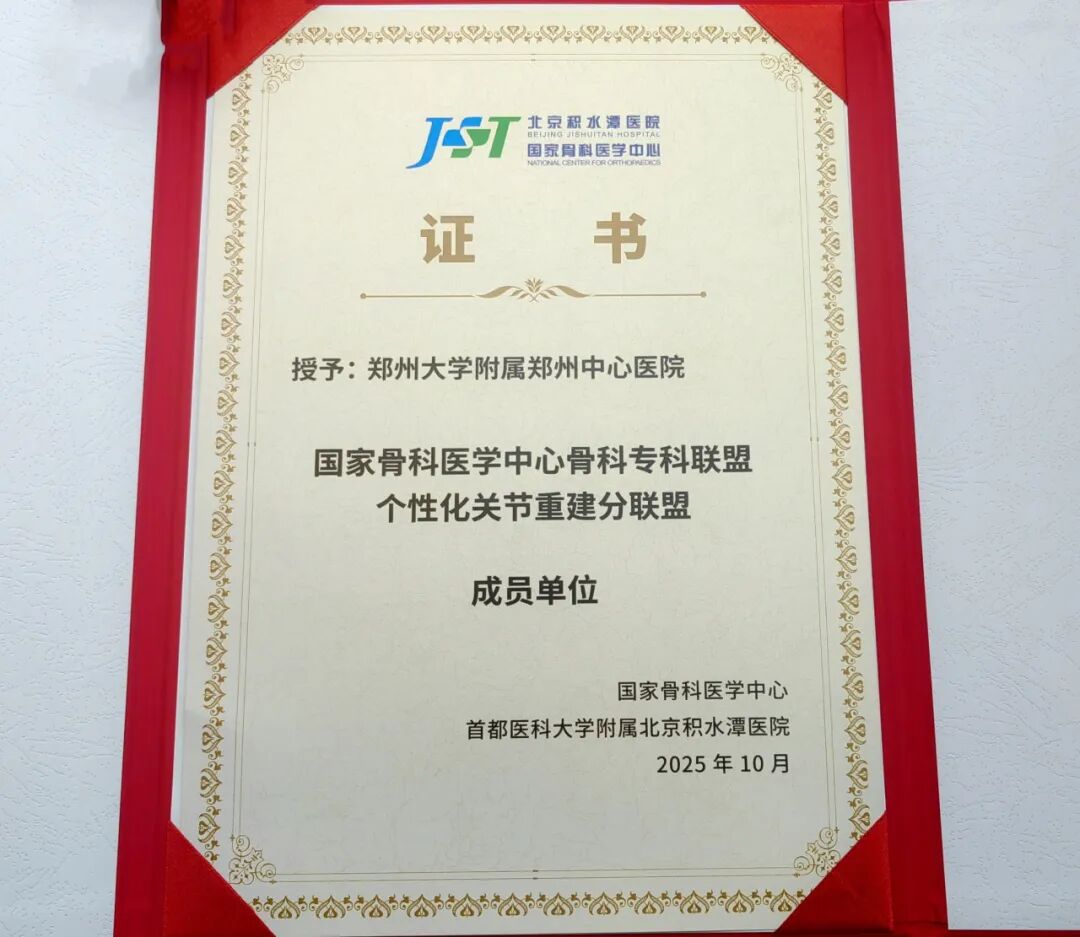 成人ai 被授予国家骨科医学中心骨科专科联盟个性化关节重建分联盟成员单位