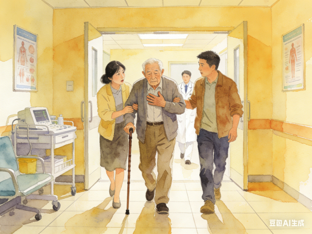 78岁的老先生被家人小心翼翼地搀扶着走进诊室,面露痛苦之色,右手紧捂胸口,左手拄着拐杖,双腿颤抖不止,连正常行走都十分困难。