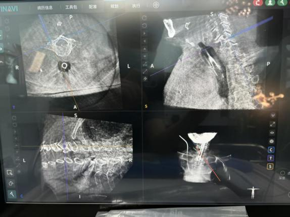 尤其是C7-T2椎弓根螺钉置入环节,传统手术极度依赖术中C臂透视,却因肩部遮挡,透视、定位极为困难,不仅手术视野受限、置钉难度陡增,螺钉还极易误入椎管,导致术中减压不充分,手术效果完全依赖主刀医生的丰富经验和精湛技术,是业内公认的“硬骨头”手术。