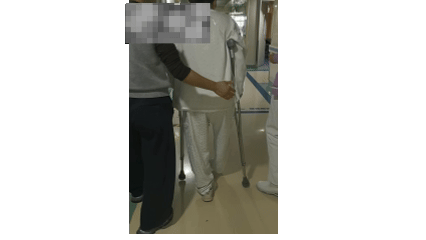 术后第三天,在充气靴保护下能够部分负重行走;