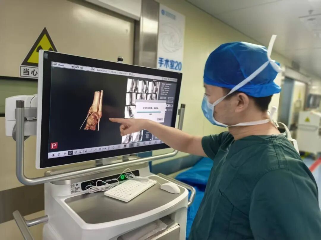 针对王女士的踝关节骨折情况,由副主任医师陈涛主刀,足踝外科团队为其实施了关节镜辅助下机器人导航微创闭合复位内固定术。