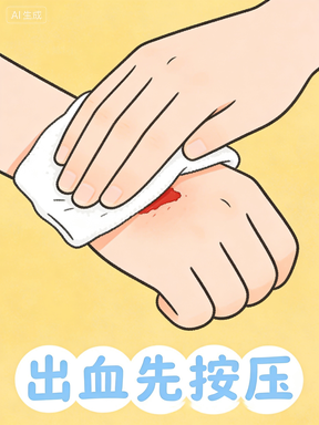 用干净纱布、毛巾、衣物,紧紧压住伤口5–10 分钟不松手,多数出血可止。