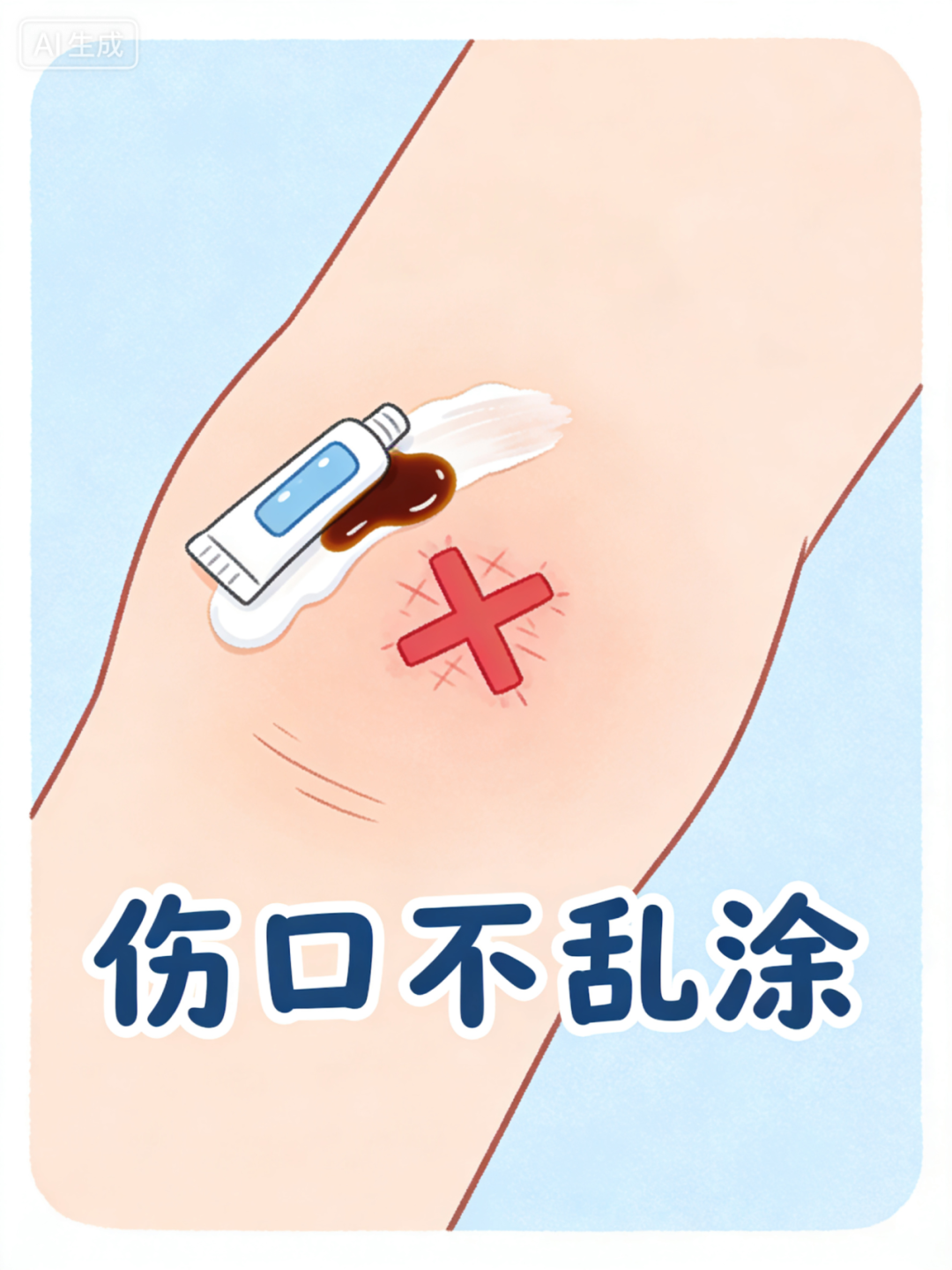 ❌ 伤口涂牙膏、酱油、红药水、紫药水:污染伤口、影响判断、增加感染。