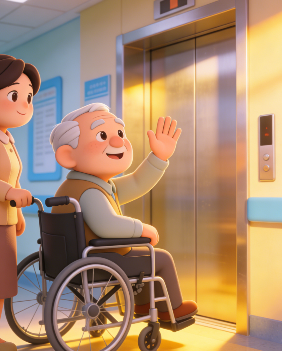 送他们到电梯口时,周伯伯忽然让王阿姨停下,缓缓抬起手,朝着我们病区的方向,轻轻挥了挥。